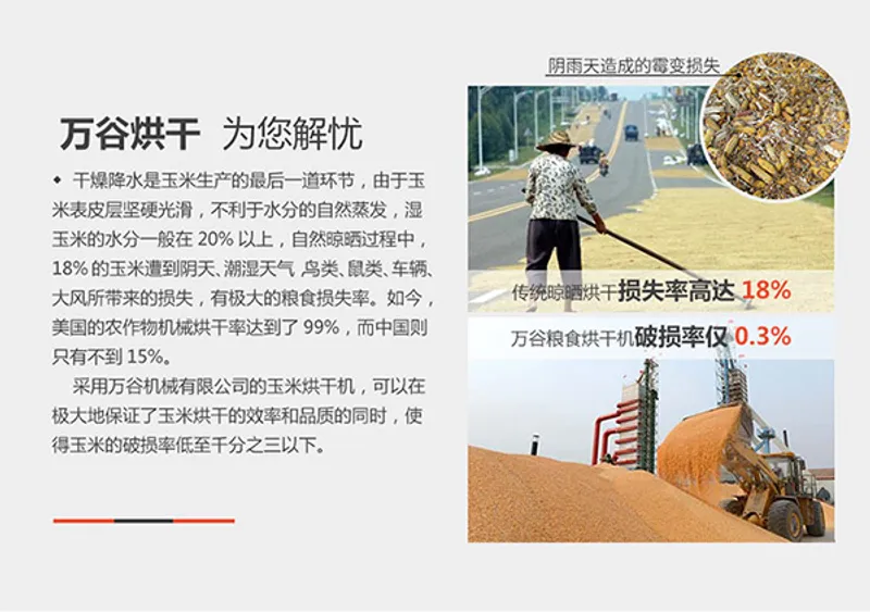 ◆万谷粮食烘干机以干净空气为干燥介质,无污染,烘后粮食品质好。