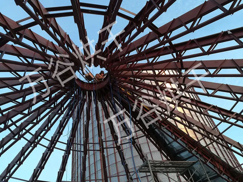 装配式钢板仓是仓储行业常见的一种结构形式,采用压型波纹板装配连接而组装成的钢板仓。装配式钢板仓通常由仓顶、舱底和仓体组成,其中仓体中包含波纹板、立柱、仓壁爬梯、人孔和抗风环组成。装配式钢板仓广泛应用于饲料、粮食、面粉、淀粉、食品等多个行业。我公司具有生产单仓50~15000吨不同规格的平底和锥底装配式钢板的生产制造能力。